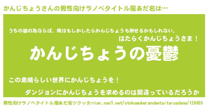 | 女子向けラノベタイトル風あだ名 | 『(仮)かんじちょうのやんごとなき事情』 |