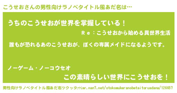 | 女子向けラノベタイトル風あだ名 | 『異世界でカフェこうせおを開店しました。』 |