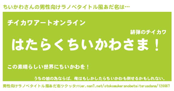 | 女子向けラノベタイトル風あだ名 | 『首の姫と首なしちいかわ』 |