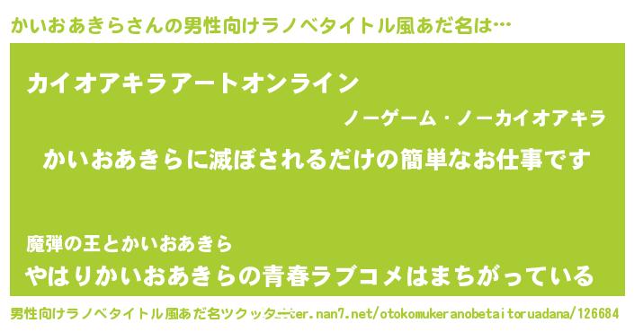 | 胡散臭い通販商品みたいなあだ名 | 『億万長者になれるブレスレット…その名も「かいおあきら」』 |