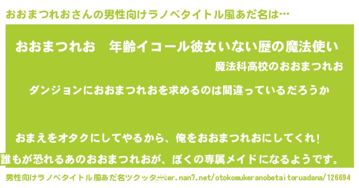 | 女子向けラノベタイトル風あだ名 | 『おおまつれおは平凡を望む』 |