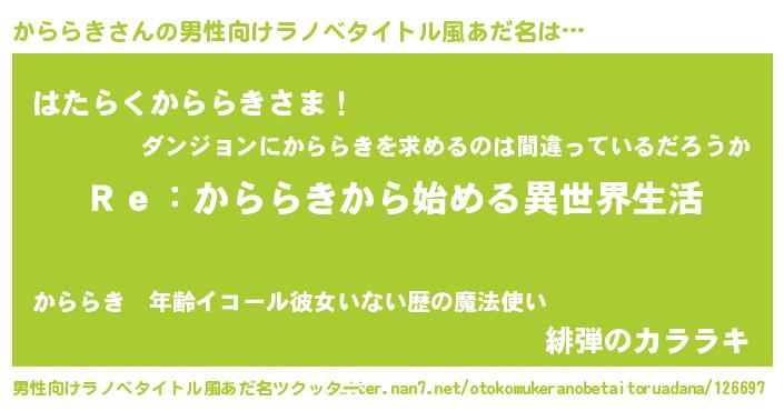 | ヒーロー風カッコイイあだ名 | 『最強戦士カララキ』『天弓騎士カラ』 |