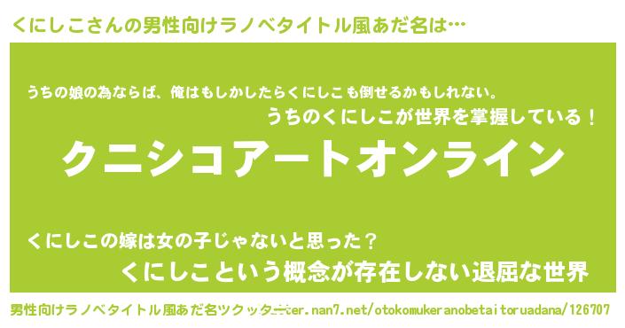 | 胡散臭い通販商品みたいなあだ名 | 『億万長者になれるブレスレット…その名も「くにしこ」』 |