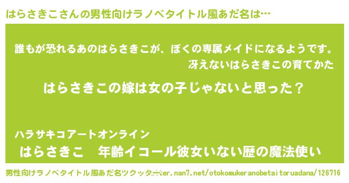 | 女子向けラノベタイトル風あだ名 | 『はらさきこ様がみてる』 |