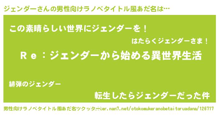 | 胡散臭い通販商品みたいなあだ名 | 『芸能人もオススメする冬虫夏草…その名も「ジェンダー」』 |