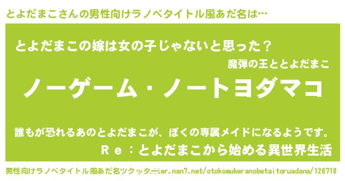 | 女子向けラノベタイトル風あだ名 | 『とよだまこ恋絵巻』『闇のとよだまこ』 |