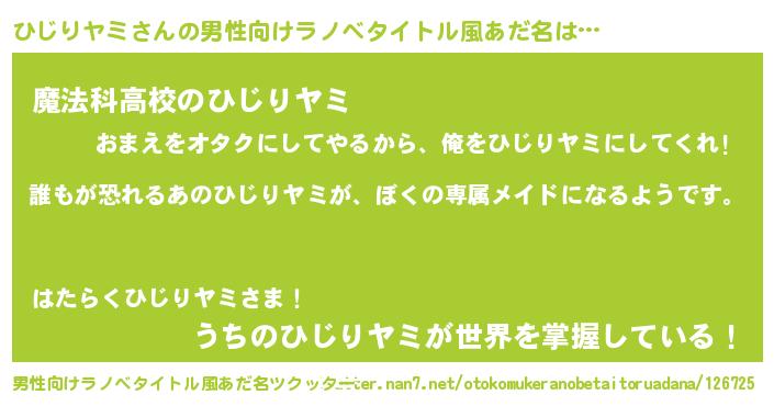 | 胡散臭い通販商品みたいなあだ名 | 『来世でも幸せになれる水素水…その名も「ひじりヤミ」』 |
