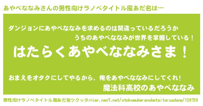 | 意味不明あだ名 | 『とにかく怪しいあやべななみ』 |