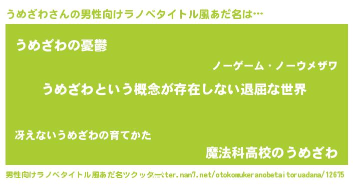 | 女子向けラノベタイトル風あだ名 | 『うめざわの契約王妃』 |