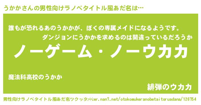 | 意味不明あだ名 | 『眠気覚ましガムうかか味』『自称うかか』 |