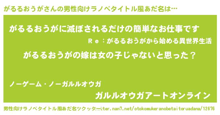 | 胡散臭い通販商品みたいなあだ名 | 『全米が絶賛したサプリメント…その名も「がるるおうが」』 |