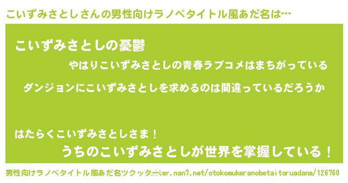 | 女子向けラノベタイトル風あだ名 | 『こいずみさとしは平凡を望む』 |