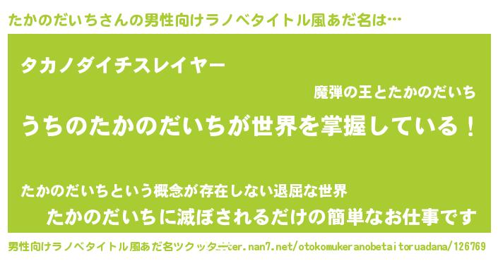 | ヒーロー風カッコイイあだ名 | 『仮面タカダー』『ネオタカノダイチ』 |