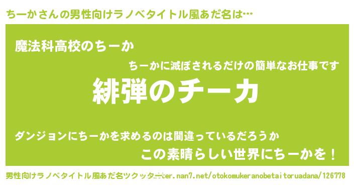 | ヘコむあだ名 | 『ちーぷりん』『ちーか(震え声)』 |