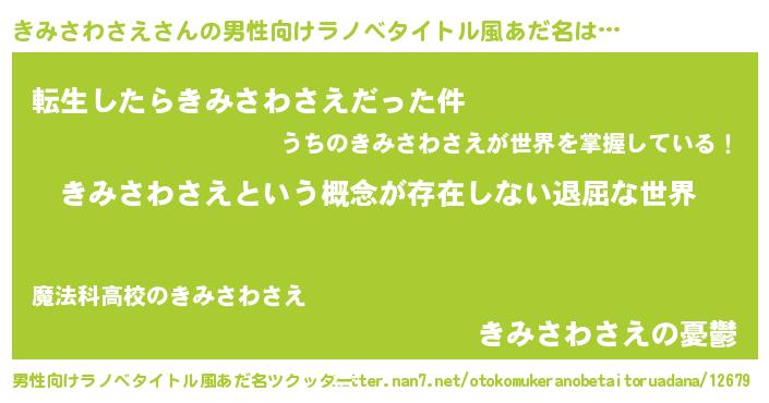 | 胡散臭い通販商品みたいなあだ名 | 『来世でも幸せになれる健康食品…その名も「きみさわさえ」』 |