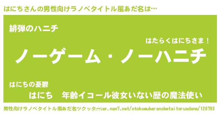 | 女子向けラノベタイトル風あだ名 | 『はにち恋絵巻』『はにちの玉の輿計画!』 |