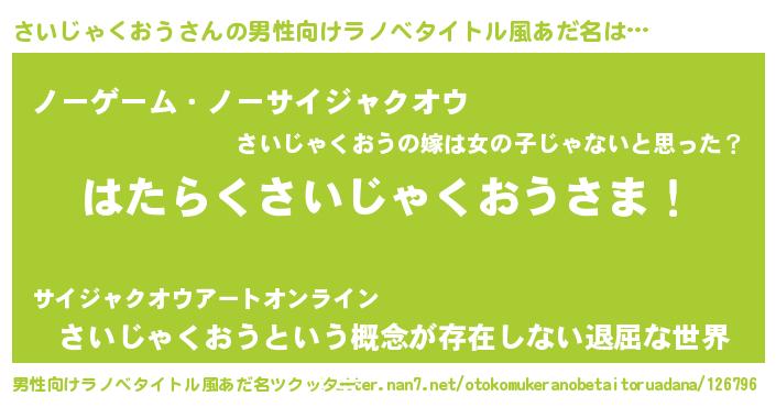 | ヘコむあだ名 | 『さいじゃくおう(笑)』『さいお』 |