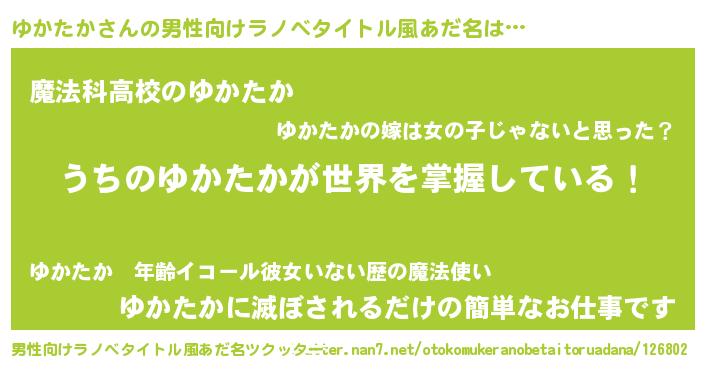 | ヒーロー風カッコイイあだ名 | 『最強戦士ユカタカ』『暗黒騎士ユカ』 |