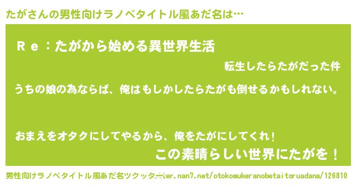 | 意味不明あだ名 | 『たがフォーエバー』『自称たが』 |