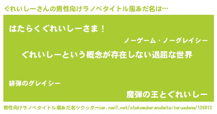 | 胡散臭い通販商品みたいなあだ名 | 『絶対に幸福をもたらす水素水…その名も「ぐれいしー」』 |