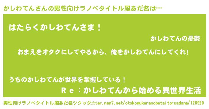 | 女子向けラノベタイトル風あだ名 | 『かしわてん夫妻のなれそめ』 |