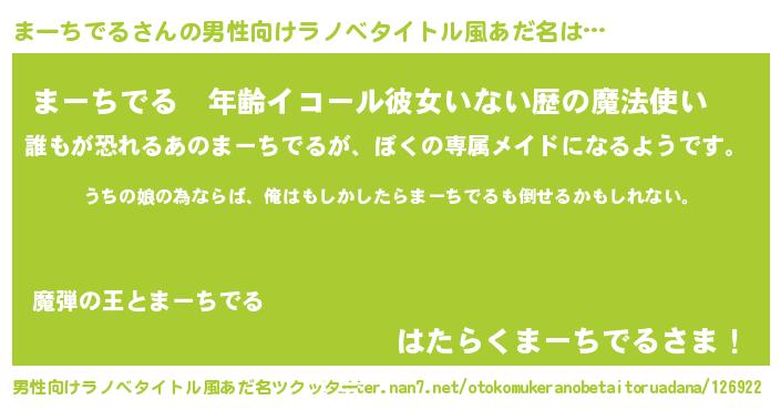 | 女子向けラノベタイトル風あだ名 | 『まーちでるの婚約者』 |