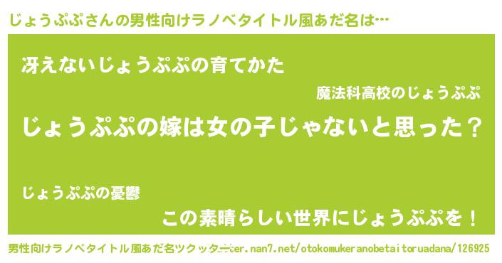 | 女子向けラノベタイトル風あだ名 | 『じょうぷぷ様がみてる』 |