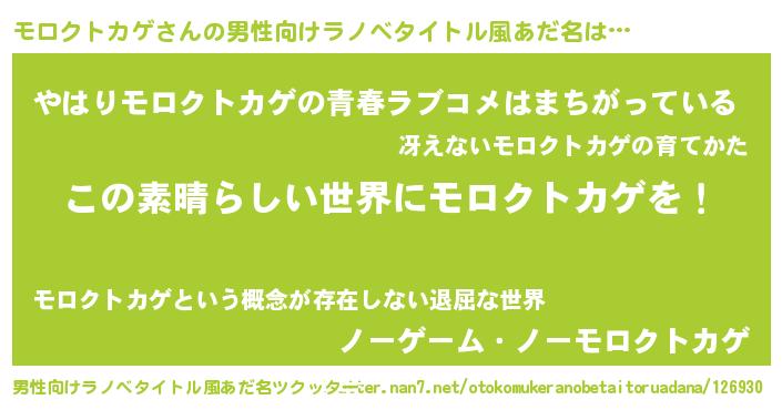 | 女子向けラノベタイトル風あだ名 | 『乙女ゲームの破滅フラグしかない悪役モロクトカゲに転生してしまった…』 |