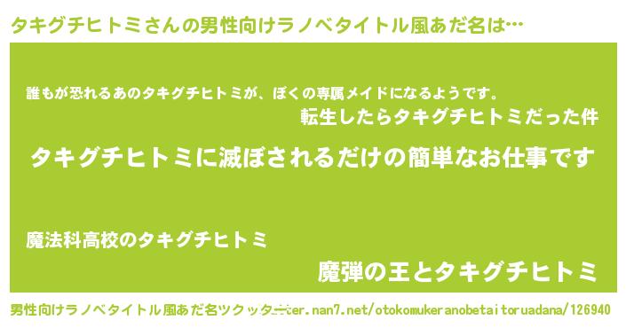 | ヘコむあだ名 | 『タキグチヒトミ(震え声)』『タキにゅー』 |