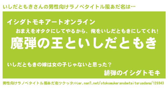 | 意味不明あだ名 | 『住所不定無職いしだともき(2歳)』 |