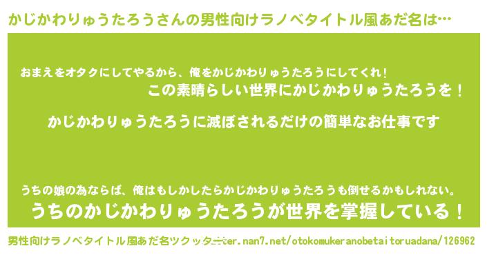 | 胡散臭い通販商品みたいなあだ名 | 『お金では代えられない隕石のかけら…その名も「かじかわりゅうたろう」』 |