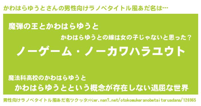 かわはらゆうとさんの男性向けラノベタイトル風あだ名をツクッター!