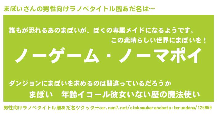 | ヒーロー風カッコイイあだ名 | 『愛の使者まぽい』『ネオマポイ』 |