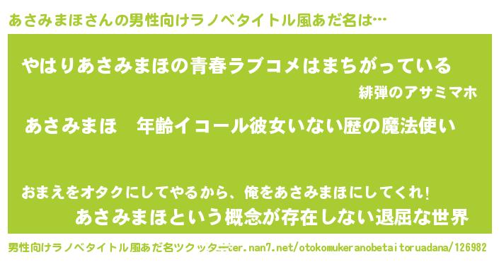 | 女子向けラノベタイトル風あだ名 | 『あさみまほの玉の輿計画!』 |