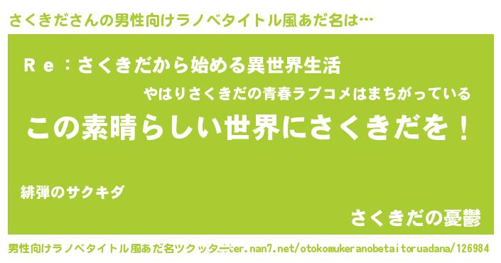 | 意味不明あだ名 | 『住所不定無職さくきだ(47歳)』 |