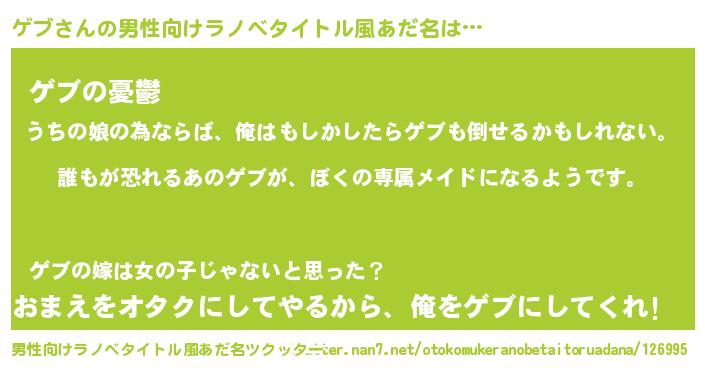 | 胡散臭い通販商品みたいなあだ名 | 『前代未聞の健康食品…その名も「ゲブ」』 |