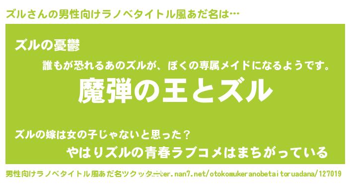 | ヒーロー風カッコイイあだ名 | 『仮面ズルダー』『スーパーズル』 |
