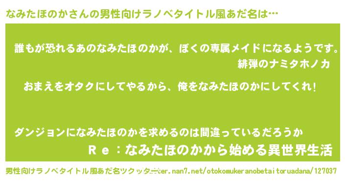 | 女子向けラノベタイトル風あだ名 | 『なみたほのか恋絵巻』 |