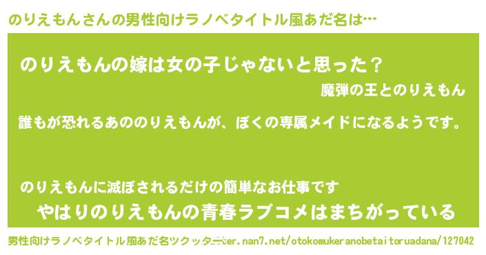 | 女子向けラノベタイトル風あだ名 | 『異世界でカフェのりえもんを開店しました。』 |