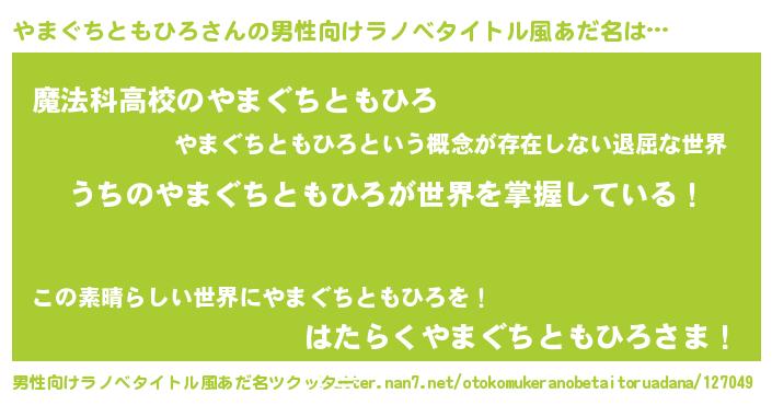 | ヘコむあだ名 | 『やまぐちともひろ(震え声)』『やまお』 |
