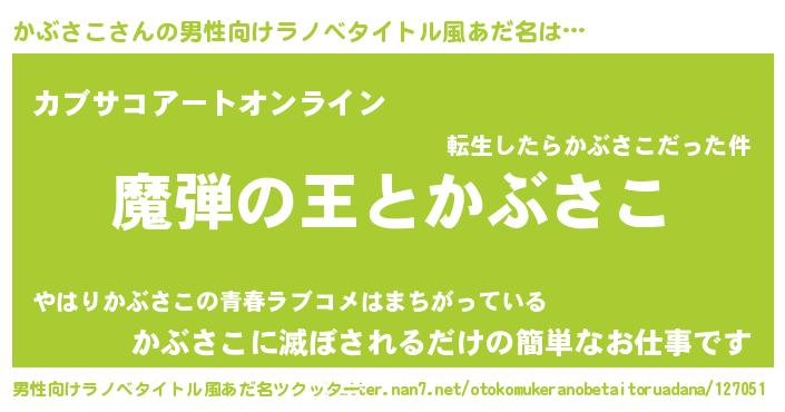 | 女子向けラノベタイトル風あだ名 | 『乙女ゲームの破滅フラグしかない悪役かぶさこに転生してしまった…』 |