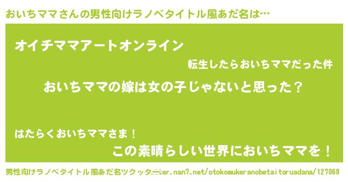 | 女子向けラノベタイトル風あだ名 | 『おいちママの卵を拾いまして』 |