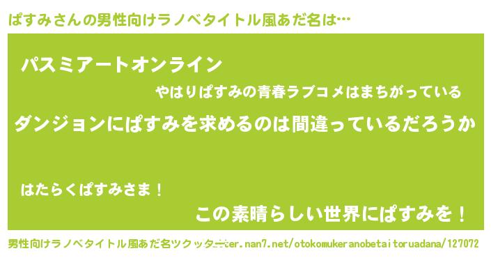 ぱすみさんの男性向けラノベタイトル風あだ名をツクッター!