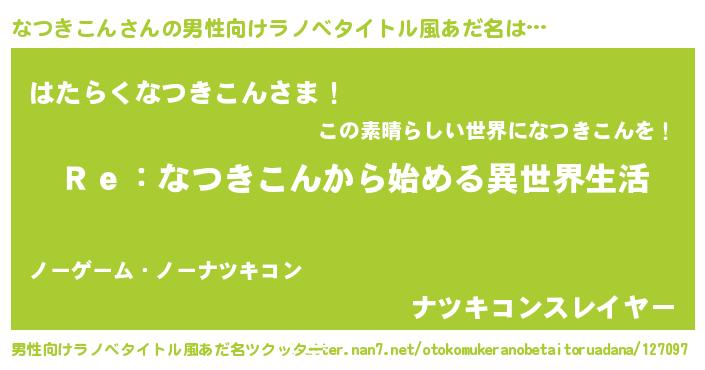 | 女子向けラノベタイトル風あだ名 | 『なつきこんストレイドッグス』 |