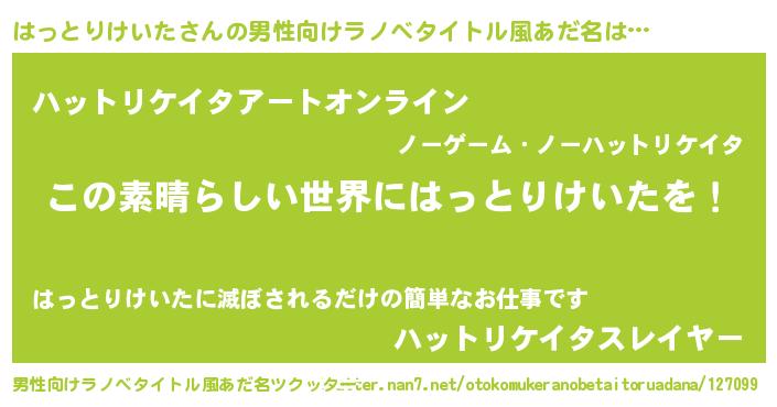 | 意味不明あだ名 | 『住所不定無職はっとりけいた(50歳)』 |