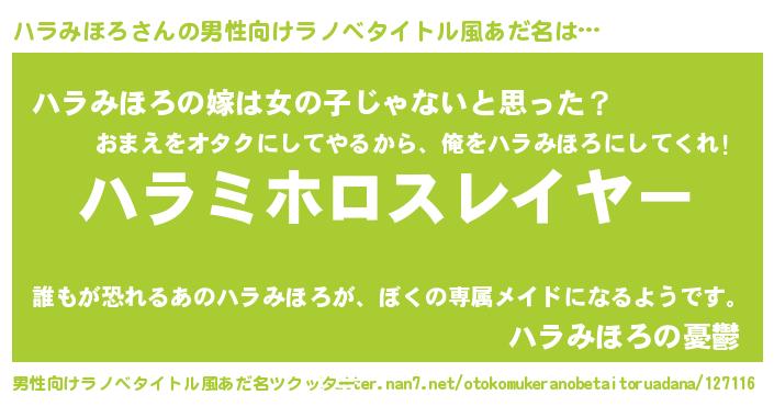 | 胡散臭い通販商品みたいなあだ名 | 『信頼と実績のネックレス…その名も「ハラみほろ」』 |