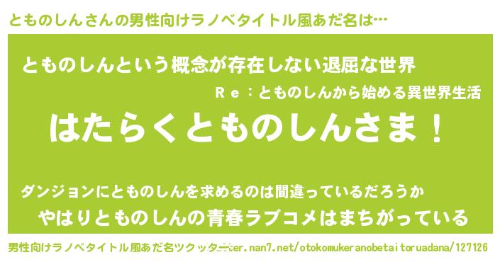 | ヘコむあだ名 | 『とものしん(笑)』『牛乳』 |