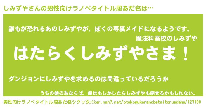 | 意味不明あだ名 | 『永久保存しみずや』『自称しみずや』 |