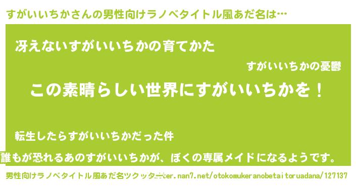 | 女子向けラノベタイトル風あだ名 | 『悪役すがいいちかに転生したようですが、知った事ではありません』 |