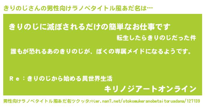 | 意味不明あだ名 | 『永久保存きりのじ』『ペロリンきりのじ』 |